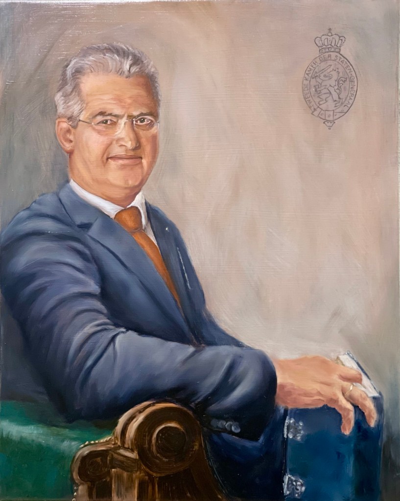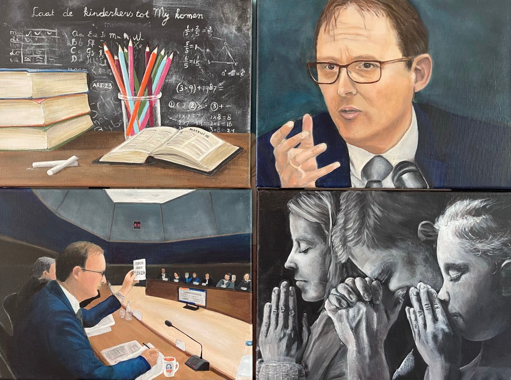 Meesterkopie ‘Andries Bicker’ naar Bartholomeus van der Helst, 1642. Olieverf op paneel, 93,5×70,5 cmIn opdracht: Vrijheid van onderwijs, meningsuiting, vergadering en geloof – acryl/olieverf op linnen 30×40Meesterkopie Aert Schouman ‘Een groene specht en een winterkoninkje’ – Acryl op linnen, 40x60cmRoodborstje, olieverf op paneel, 20x30cm