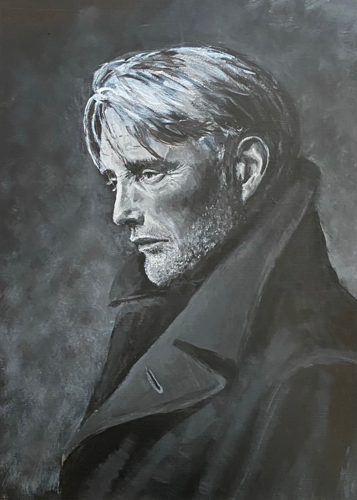 Mads Mikkelsen naar een foto van Stefan van Fleteren, Acryl op papier, 40x60cmStudie Haan